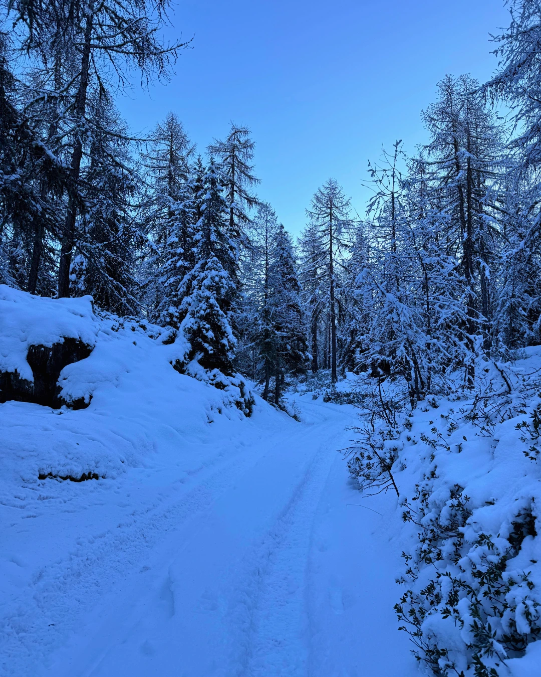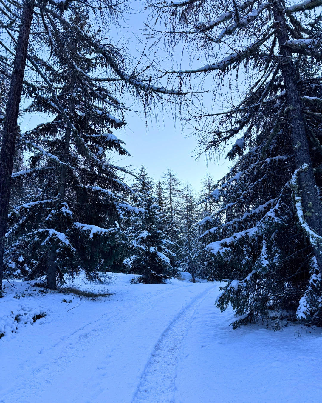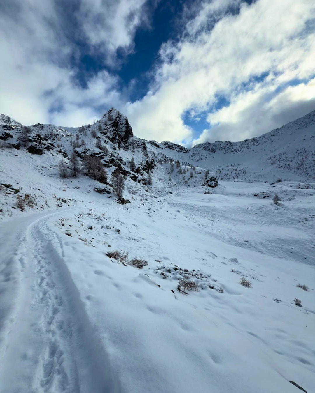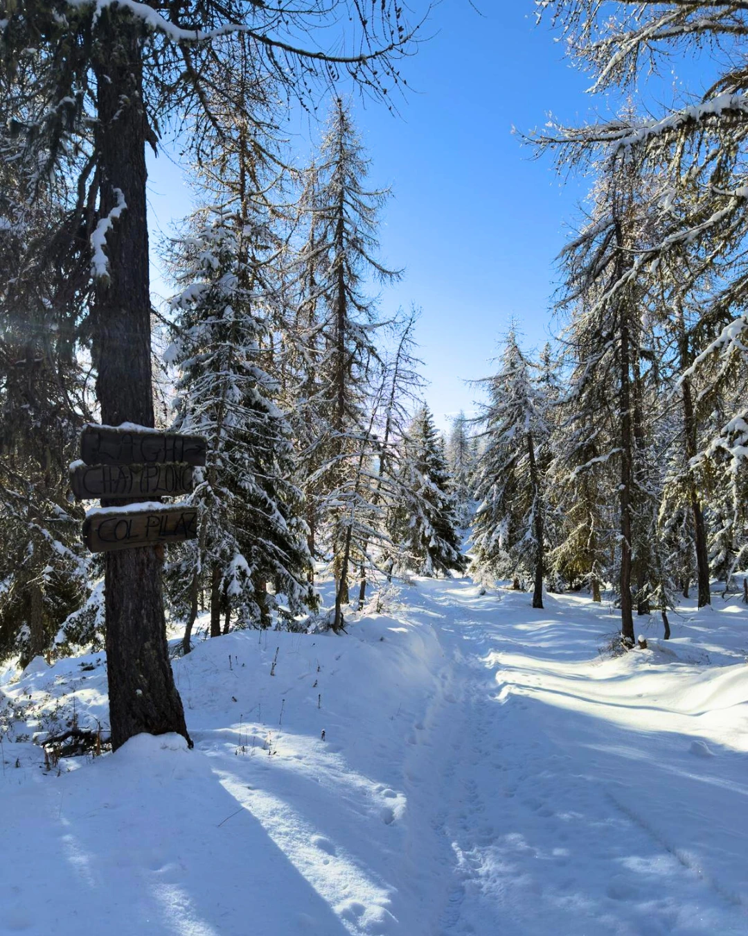 La discesa conduce infine a Chamois, uno dei borghi più caratteristici della regione, prima del rientro ad anello verso La Magdeleine su comoda strada sterrata. Un’escursione completa e appagante, perfetta per vivere la montagna invernale tra panorami aperti e angoli silenziosi.