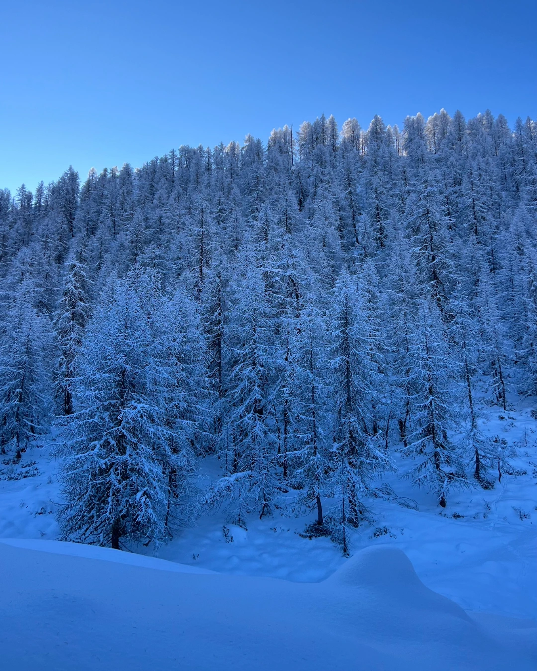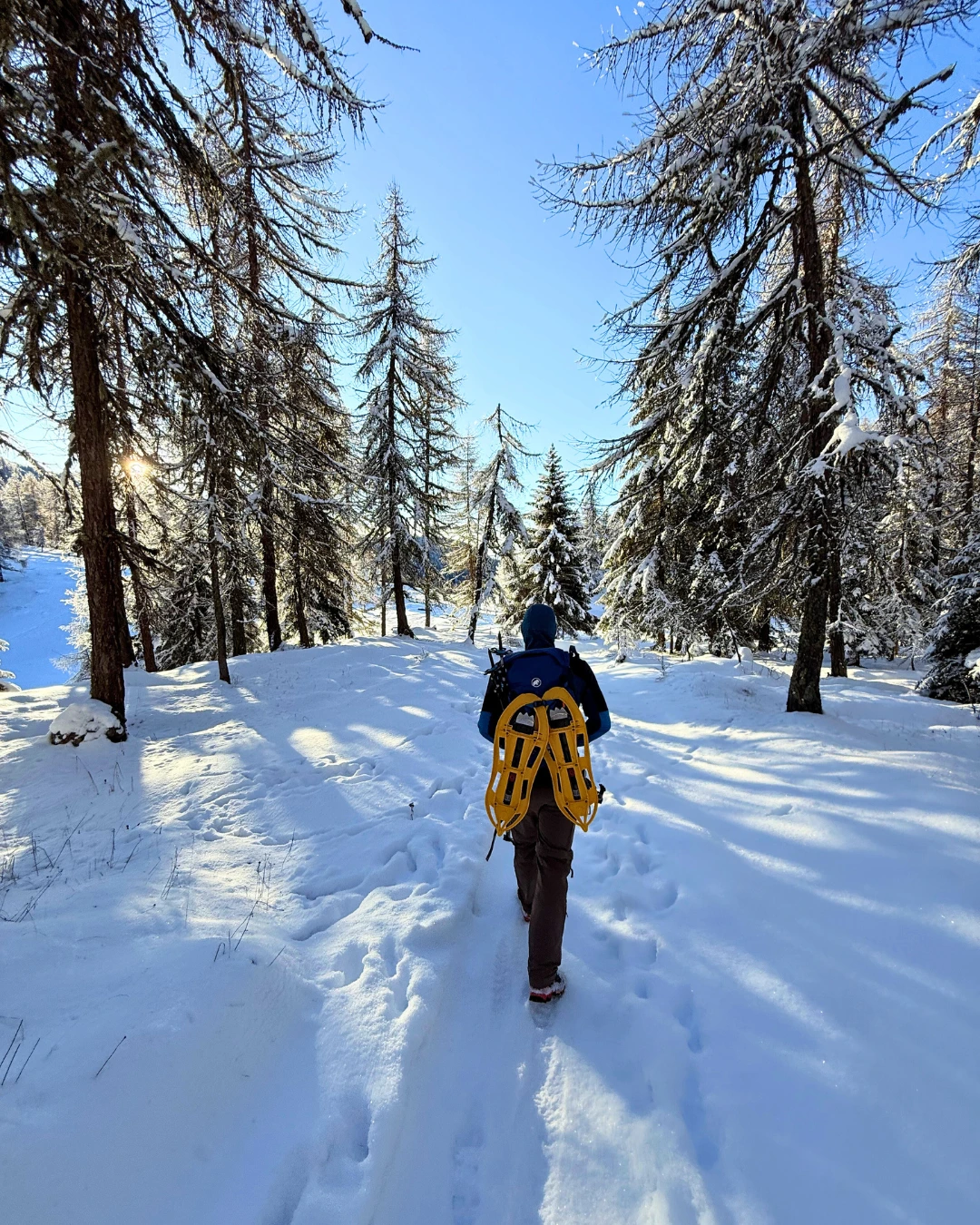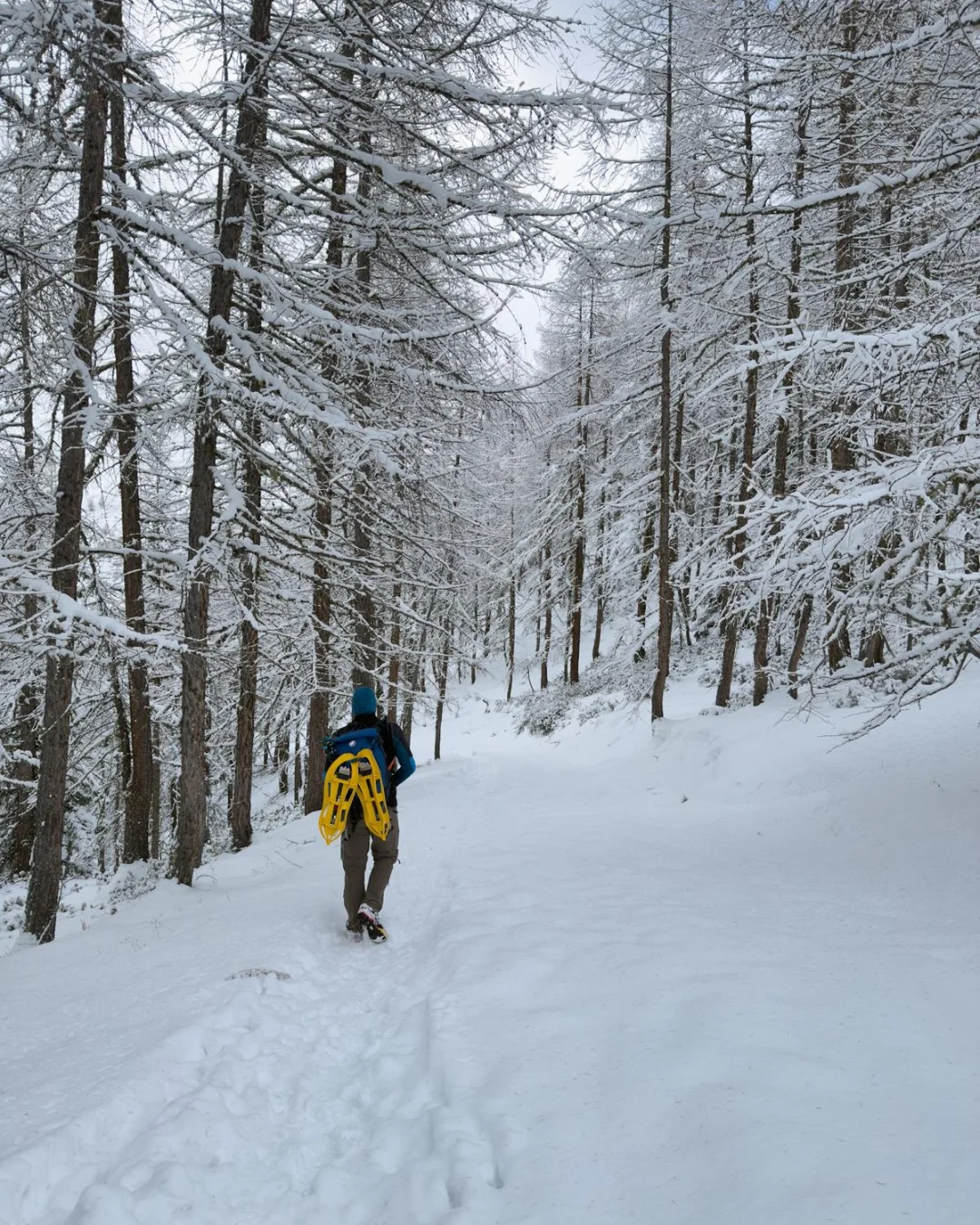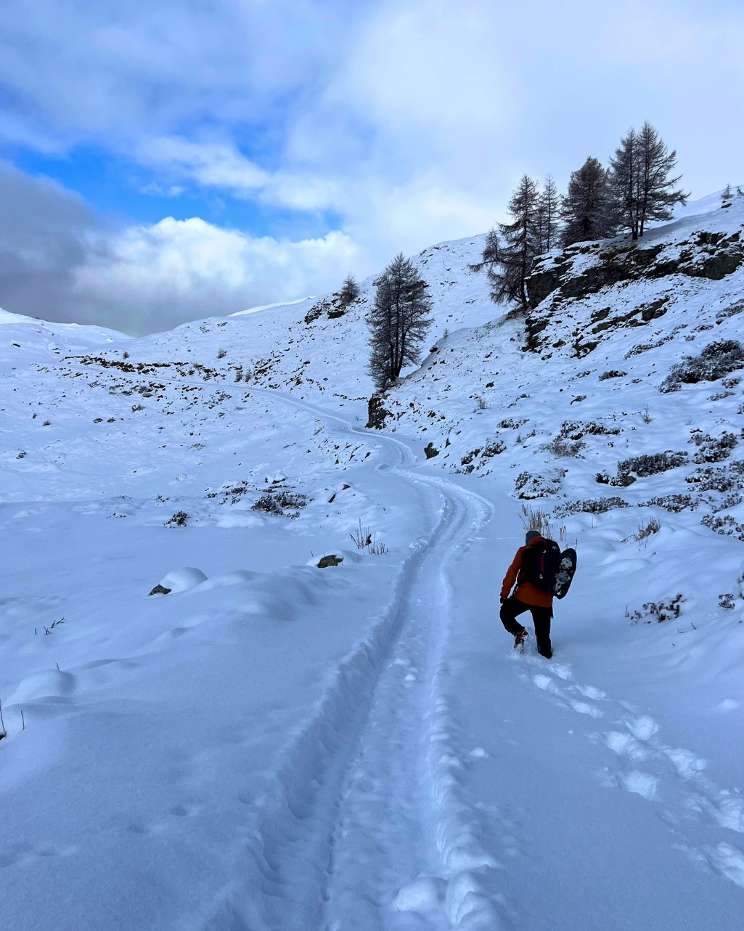 La discesa conduce infine a Chamois, uno dei borghi più caratteristici della regione, prima del rientro ad anello verso La Magdeleine su comoda strada sterrata. Un’escursione completa e appagante, perfetta per vivere la montagna invernale tra panorami aperti e angoli silenziosi.