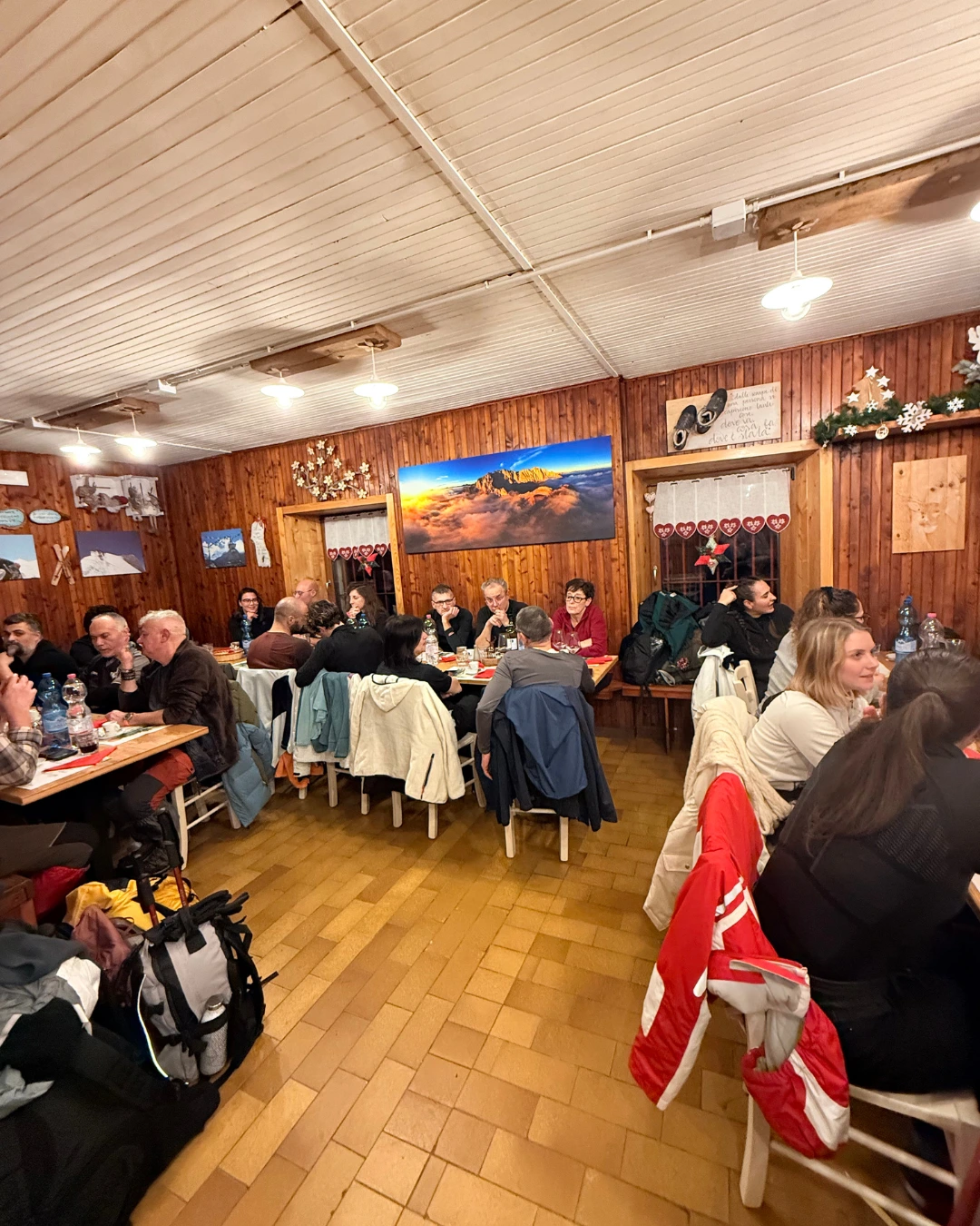 Il rifugio è grande, molto curato e accogliente. È il luogo ideale per una sosta rilassante o per il pranzo: la cucina è di livello alto, con piatti abbondanti e davvero ottimi, una di quelle soste che da sole valgono l’escursione.